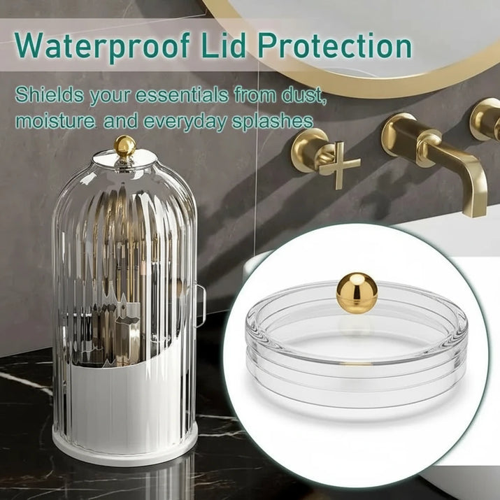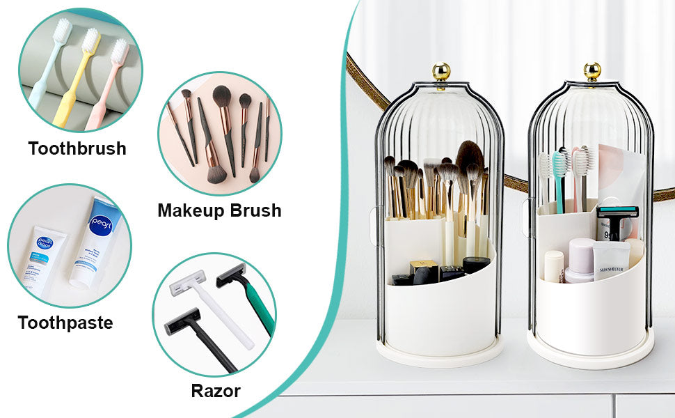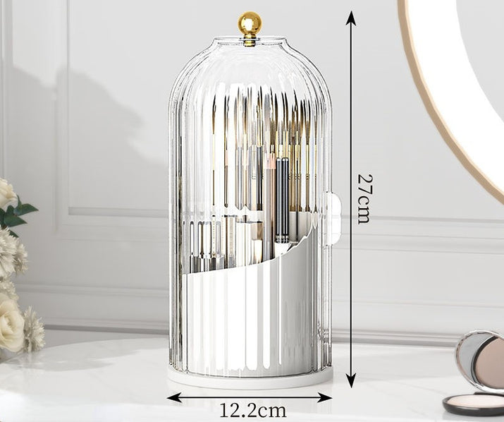 Keep your makeup and accessories organized with this elegant desktop storage solution, featuring a stylish turntable design that adds a touch of sophistication to any space.